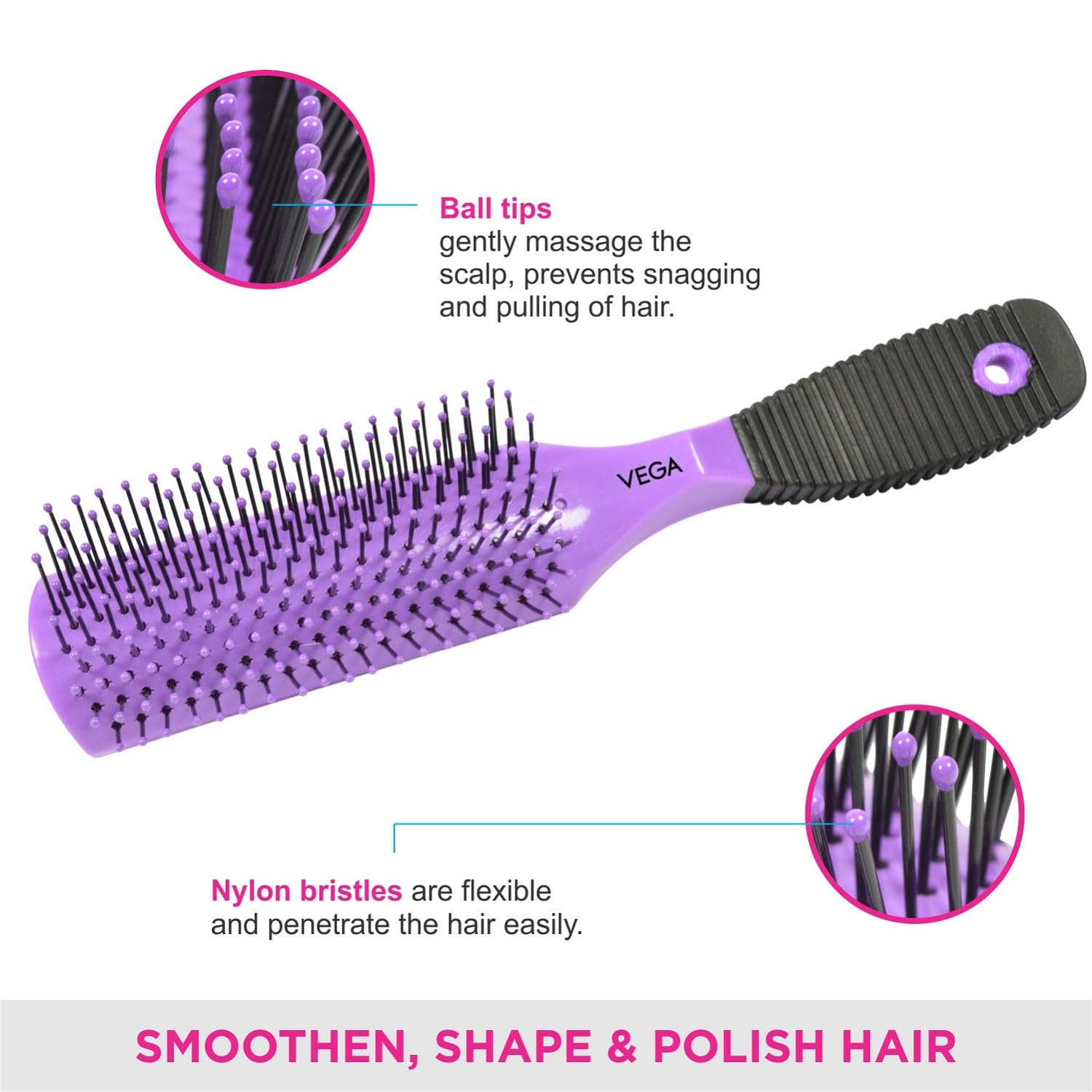 Ideal for daily styling of hair that require body and volume. These brushes are designed to smoothen shape and polish all hair lengths and textures. Ball tipped nylon bristles gently massage the scalp help in detangling and add root lift. Suitable for all hair types. Mostly available in rectangle shape.