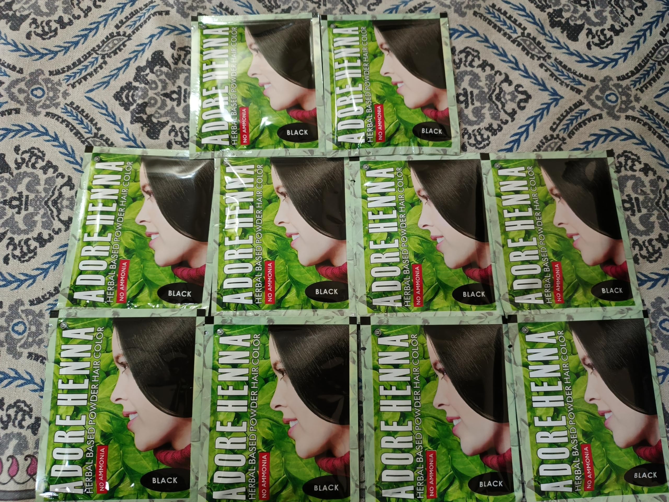 Adore Henna Black Hair Color Powder Pack of 10 100gm