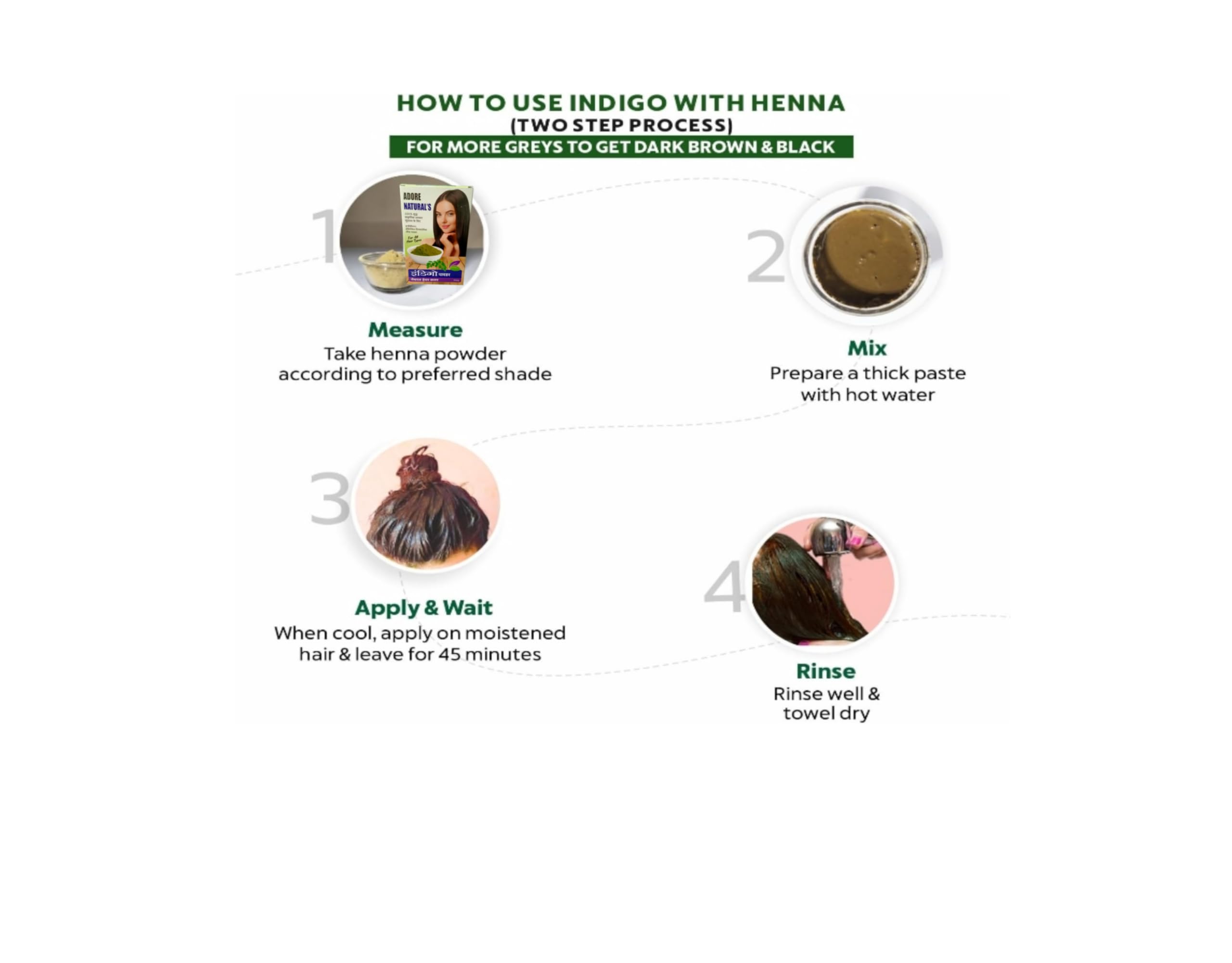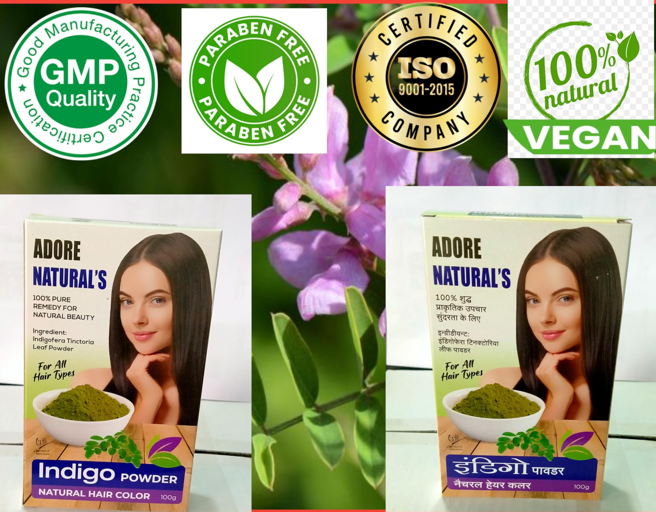 • Natural Indigo Powder: A 100% pure and natural hair colour remedy derived from the Indigofera Tinctoria leaf powder.