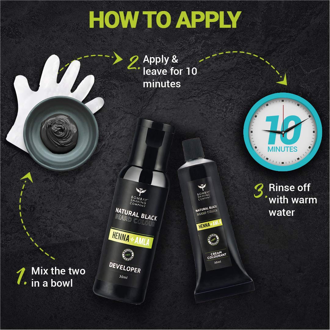 Bombay Shaving Company Beard Color for men natural black designed specifically for the most common indian beard colour to ensure a natural look. SKIN FRIENDLY WITH NO AMMONIA: This beard colour is ammonia free with no harsh chemicals making it very skin friendlysafe and long-lasting perfect for all skin types NATURAL INGREDIENTS:Bombay Shaving Co Beard Color For Men Enriched with organic extracts like henna and amla to provide moisture & nourishment to beard moustache and skin. PROTECTS INSIDE-OUT: The beard colorant acts like a hair tonic thereby making hair shinier and softermade with non-dripping and non-staining formulation LONG LASTING HAIR COLOUR: Bombay Shaving Co Beard Color not only gives you a long lasting natural black finish but it also helps soften and detangle your beard.