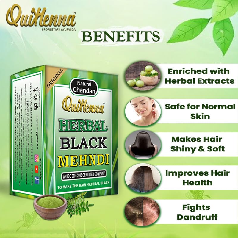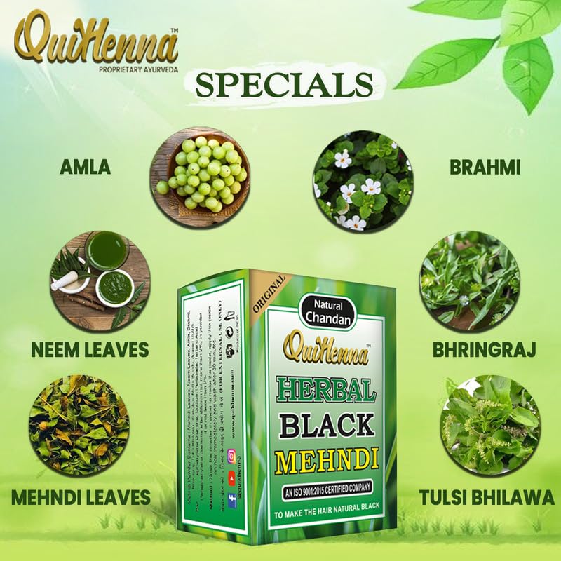 QuikHenna Herbal Mehndi Powder: 100% pure henna with herbs and chandan for all skin types.