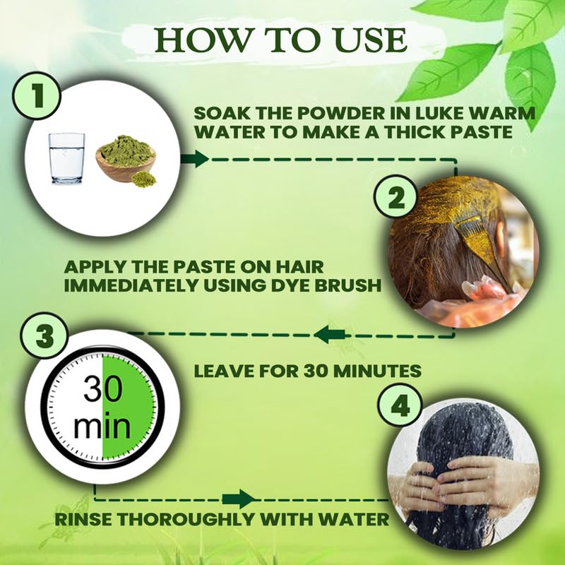 Rich Hair Color: Natural mehndi powder provides vibrant color shine and dandruff-free results.