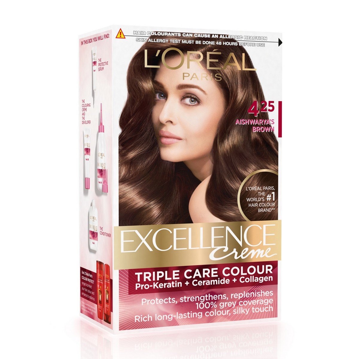 L'Oreal Paris Excellence Creme Hair Color 4.25 Aishwarya's Brown 72ml+100g And L'Oreal Paris Color Protect Shampoo 360ml (With 10% Extra)