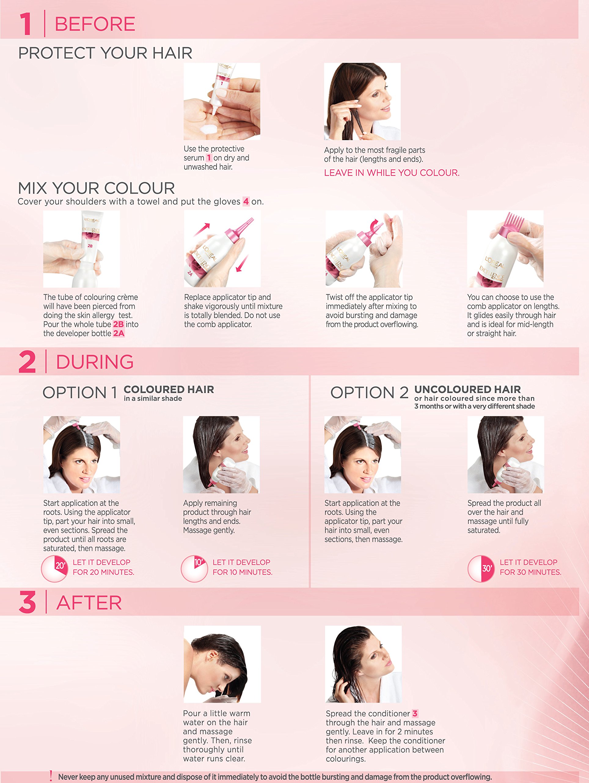 Product DescriptionLoreal Paris excellence me pays tribute to legendary icons of bollywood. Each of these legends are known for their legendary beauty characteristic/distinctive hairstyles and iconic personalities.From the Manufacturer THE EXCELLENCE CREME RANGE: RICHEST CARE FOR RICHEST COLOUR LOreal Paris Excellence Creme gives the richest care for the richest colour. Over the last 20 years Excellence Creme has been part of womens life and consistently reinvented its formula as an expert; always more efficient with more care. Infused with its triple care formula: an advanced technology concentrating on 3 powerful ingredients strengthen your hair while colouring leaving it softer and protected and giving you 100% grey coverage from root to tip! THE SECRET OF THE FORMULATION OF EXCELLENCE CRoME PRO-KERATIN STRENGTHENS CERAMIDE PROTECTS COLLAGEN REPLENISHES AN EXTENSIVE RANGE OF SHADES CLASSIC BLACK NATURAL BROWNS STYLISH BURGUNDY SPECIAL BROWNS RECREATE THE MAGIC WITH THE LIMITED EDITION EXCELLENCE LEGENDS COLLECTION As times change so do trends but some styles are eternal and some hair colours legendary. Just like Nargis and Madhubala. Two iconic beauties whove inspired L'Oreal Paris to recreate their timeless magic in shades just as timeless with the Excellence Legends Collection. Reliving their legacy is none other than Aishwarya Rai. Styled in Natural Darkest brown Shade 3 and Burgundy Shade 3.16 she personifies the art of elegance. With shades that beautifully complement Indian skin tones these hair colours are the classic transformation your hair deserves. BEAUTY ADVICE FROM OUR EXPERTS: CHRISTOPHE ROBIN LOREAL PARIS EXPERT COLOURISTI recommend Excellence to women who want ultimate grey coverage and intense care for their hair. I love Excellences colours for their richness of tones and their radiance. They are always very flattering to womens skin tones. His application tips for best results: Always use the Protective serum which conditions lengths and dry ends intensely nourishes and allows an even result without a block-colour effect. If you are deciding between 2 shades of Excellence Creme choose the lighter. Always consider that results will vary depending on your natural colour. SAFETY AND CARE ADVICE FROM LOREAL PARIS You must always do a skin allergy test without fail 48 hours before each use of this product. Do not use if you have previously experienced a reaction to a hair colourant or have an irritated or damaged scalp. If you have ever had even once a black henna tattoo you may have become allergic without knowing. You must do a skin allergy test 48 hours before use. Always follow the instructions leaflet. BEAUTY TIPS FOR FABULOUS HAIR COLOUR Use products specially formulated for coloured hair LOreal Paris Colour Protect is a complete range of products (shampoo and conditioner) specially developed to prolong the shine of your colour after washing. Excellence Creme is also ideal for covering highlights. It is advisable to put a little moisturizer cream on the skin and hair line to easily wipe away any splashes.