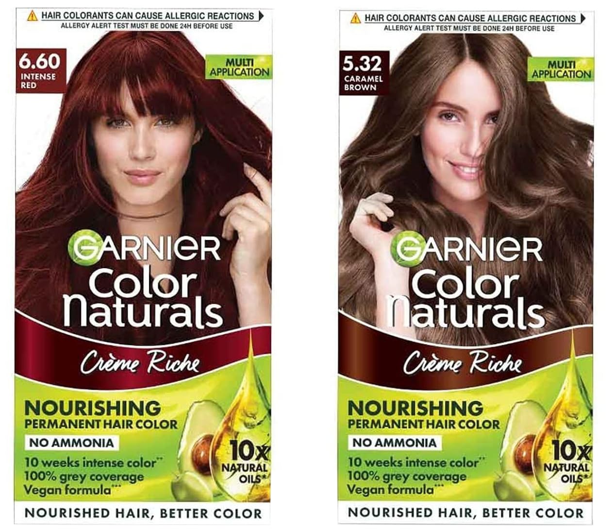 Garnier Color Naturals Shade 5.32 Caramel Brown 70ml+60g and Garnier Color Naturals Shade 6.60 Intense Red
