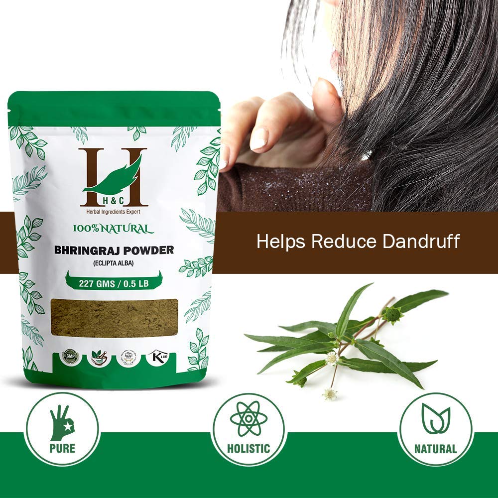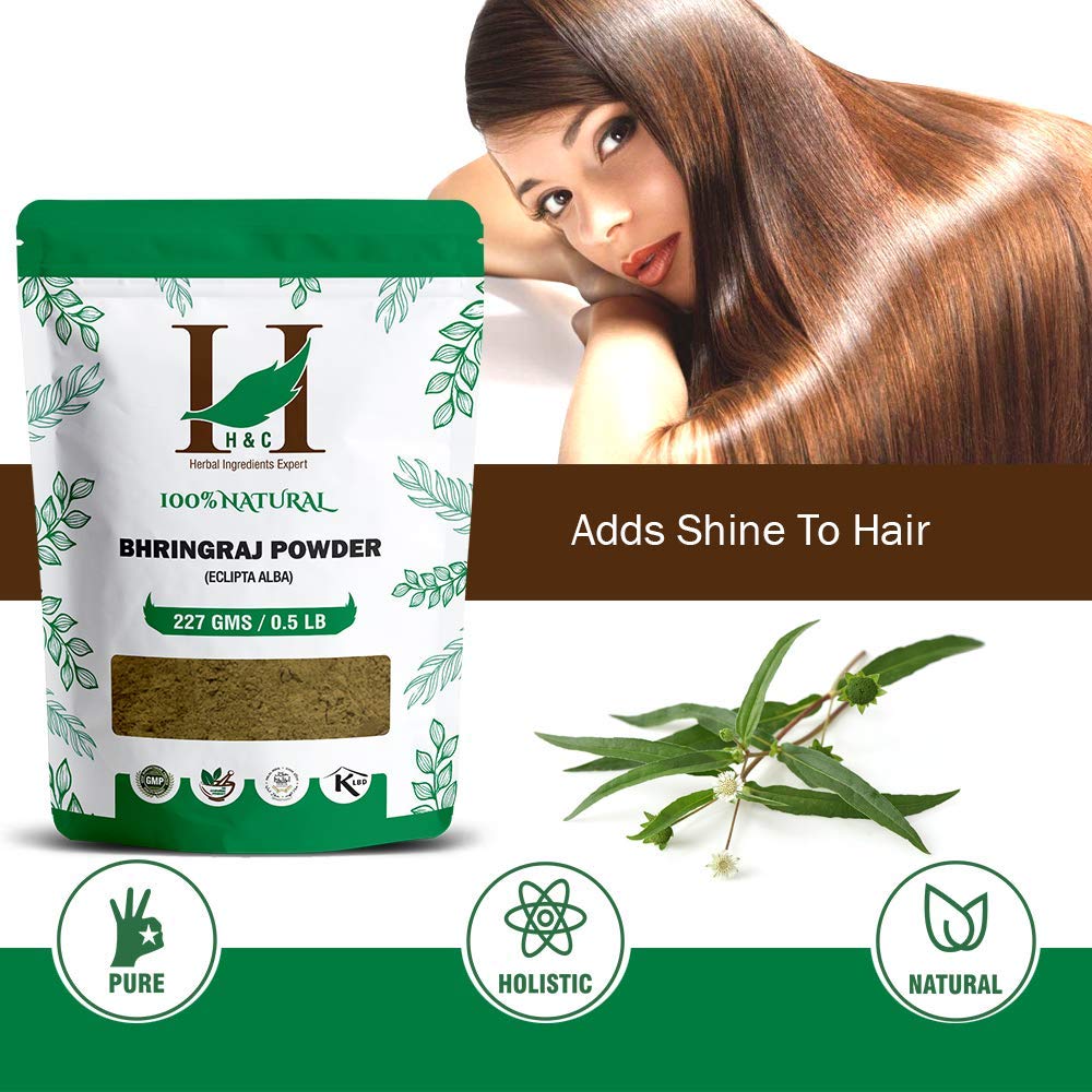 H&C HERBAL INGREDIENTS EXPERT Natural Bhringraj (Eclipta Alba) Powder - 227 Grams/ 0.5 Lb/08 Oz - For Hair Growth Rejuvenator