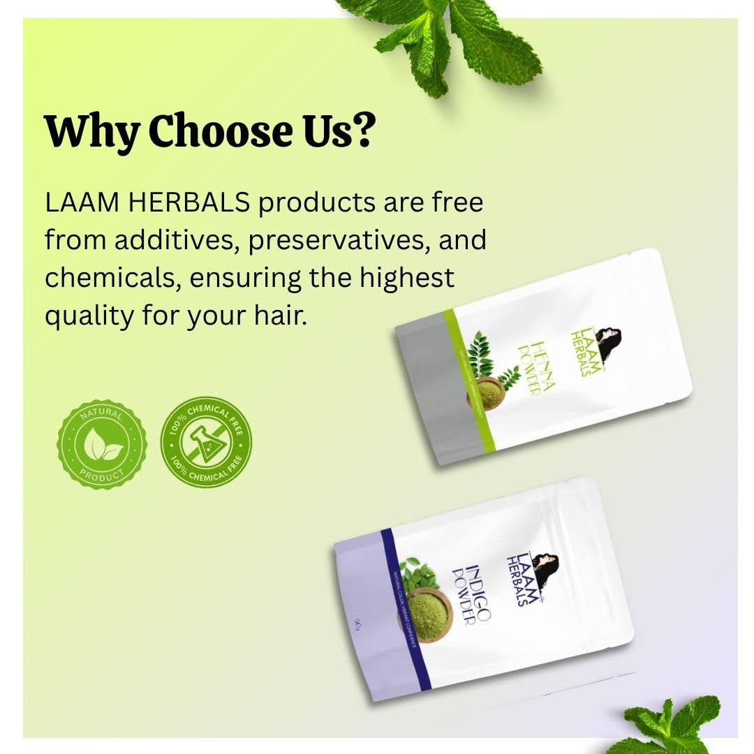 Laam Herbals is known for it Pure & Natural Henna Powder. Heena powder is made by Shade drying the leaves of heena plant and grinding it to fine powder. Heena leaves contains natural die that dies the upper layer of the skin temporarily. But heena leave does not leave stains if applied directly until it is grounded into powder. Laam Herbals provide pure natural and premium quality heena to our customers since 1991. The triple-sifted process makes it a lump-free powder that is easy to apply over Hair. The best way to use the heena powder is to mix it with tea water some coffee powder and for better results leave it for soak in an iron pan for 6 to 12 hours and then apply the paste on the hair after drying rinse off with normal water; do not use shampoo or soap to wash hair for at least 3 days. It takes several days of application to make the color permanent on your hair.