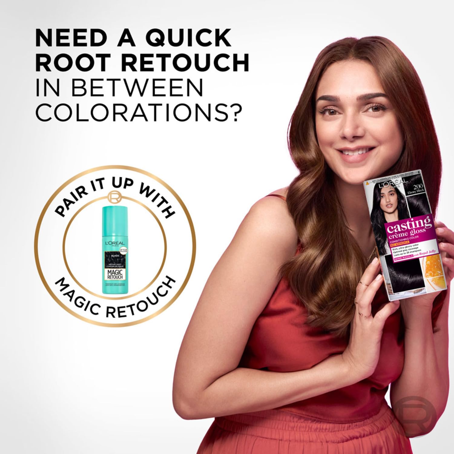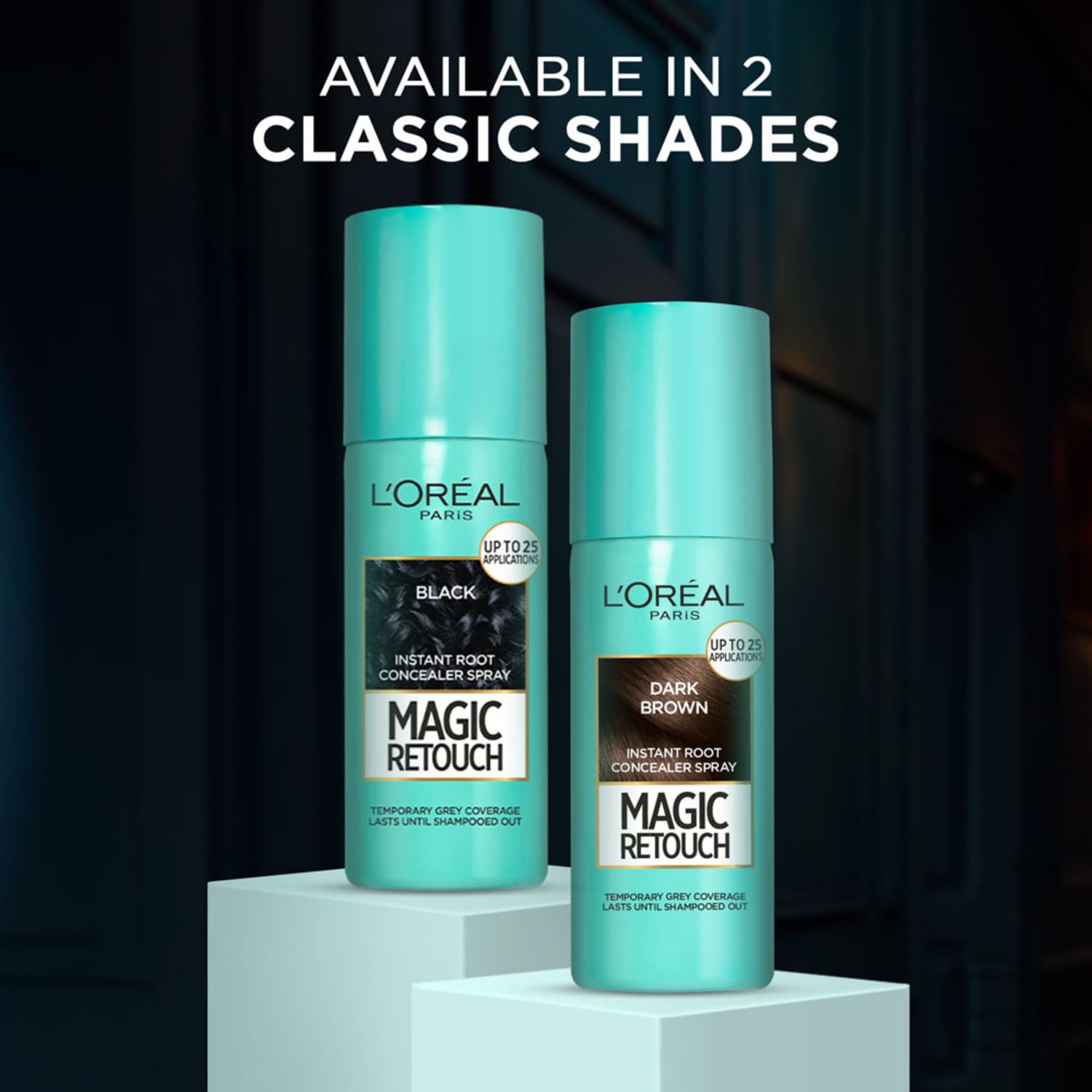 Color:Black|Design:Retouch SprayThe L'Oreal Paris Magic Retouch is an instant root concealer spray that covers grey roots in just one quick spray - when Where and how you need it. Perfectly matches and blends with your hair color. 3 seconds to a flawless root touch up. The pinpoint micro-diffuser precisely targets greys and the rich color pigments give you perfectly blended coverage.Lasts until washed out. No transfer Lightweight formula. Available in brown and black hair color. Find your shade!