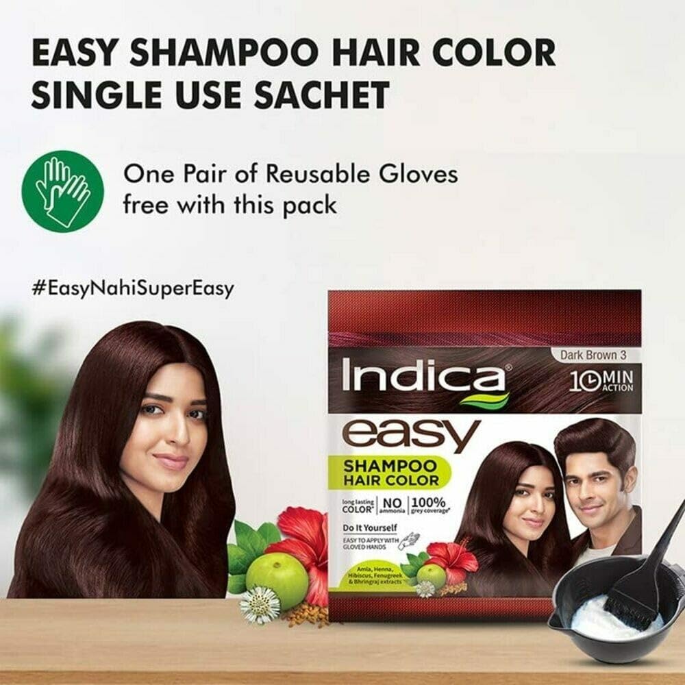 Indica easy is a revolutionary product in hair color industry. Gone are the days when you required brush and bowl for coloring hair. Indica easy comes in a shampoo based format which can be directly applied by hand with the help of gloves. It is one of the most convenient forms of applying color where you donât need to seek anyone help for coloring. So why wait! Color your hair! Do it easy.