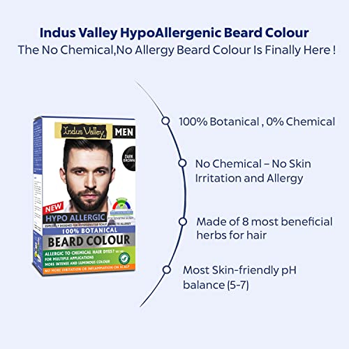 INDUS VALLEY 100% Botanical Hypo Allergic Aqua Beard Colour (Dark Brown, 100g +15ml)