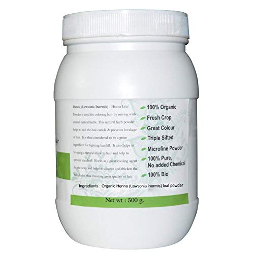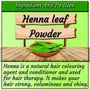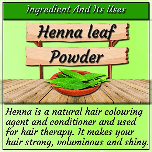 • 100 % certified and organic henna powder with and completely natural ingredients and no added chemicals whatsoever.