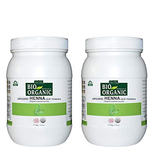 INDUS VALLEY 100% Organic Henna Leaf Powder Jar - Set of 2 (500g*2=1000g)