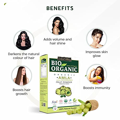 INDUS VALLEY Bio Organic Amla Powder is an organic solution to keep your hair healthy and shining throughout. It works as an excellent hair conditioner and due to its organic elements it can also be used as an effective cleanser for face. This pure amla hair powder brings to your hair the nourishment of the Indian gooseberry which has been used by many generations to obtain silky long hair. Amla powder helps in stimulating hair growth and preventing hair loss so now you can rest all your hair fall worries and enjoy long and strong hair. This amla powder is ideal for Men and Women. Both products are 100% Herbal and naturally homemade. Bio Organic Herbal Henna Powder is a Rajasthani 100% organic herbal henna powder that gives your hair the healthiest henna color ensuring gray coverage and health of your hair simultaneously. With the presence of natural herbs like Henna Amla Shikakaibrahmi reetha tulsi fenugreek bhringraj and colorless henna it boosts your hair's health protects it from hair related issues like dandruff itchy skin etc. Being dermatologist recommended it is absolutely safe for lactating or pregnant mothers and also safe for people allergic to hair colors.