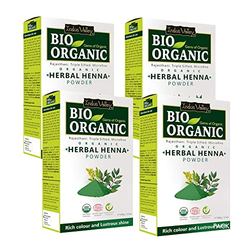 INDUS VALLEY Bio Organic Herbal Henna Powder, 100g*4=400g - Green