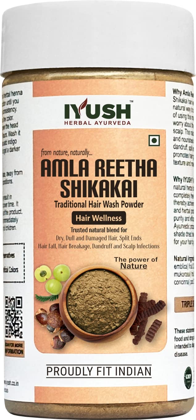 IYUSH Herbal Ayurveda Amla Reetha Shikakai Powder for Hair - 250gm | Hair Mask for Hair Growth | Hair Volume Powder | Hair Pack for Hair Growth | Traditional Herbal Hair Wash Powder |