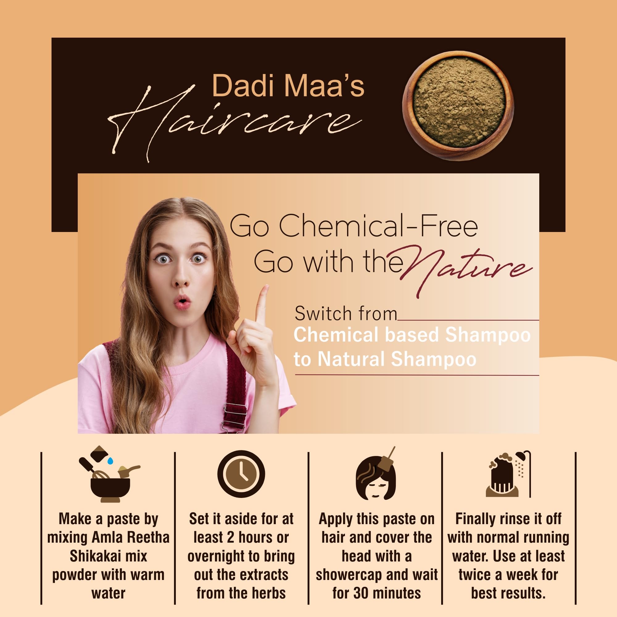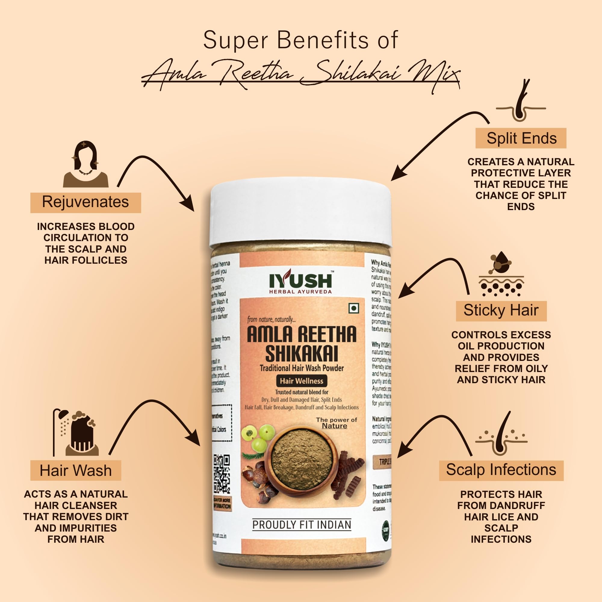 Amla Shikakai Reetha Powder for Complete Hair Nourishment: Amla powder is rich in antioxidants and Vitamin C which reduces the damage caused by free radicals resulting in improved hair quality. The anti-inflammatory and cleansing effect of Reetha fruit no