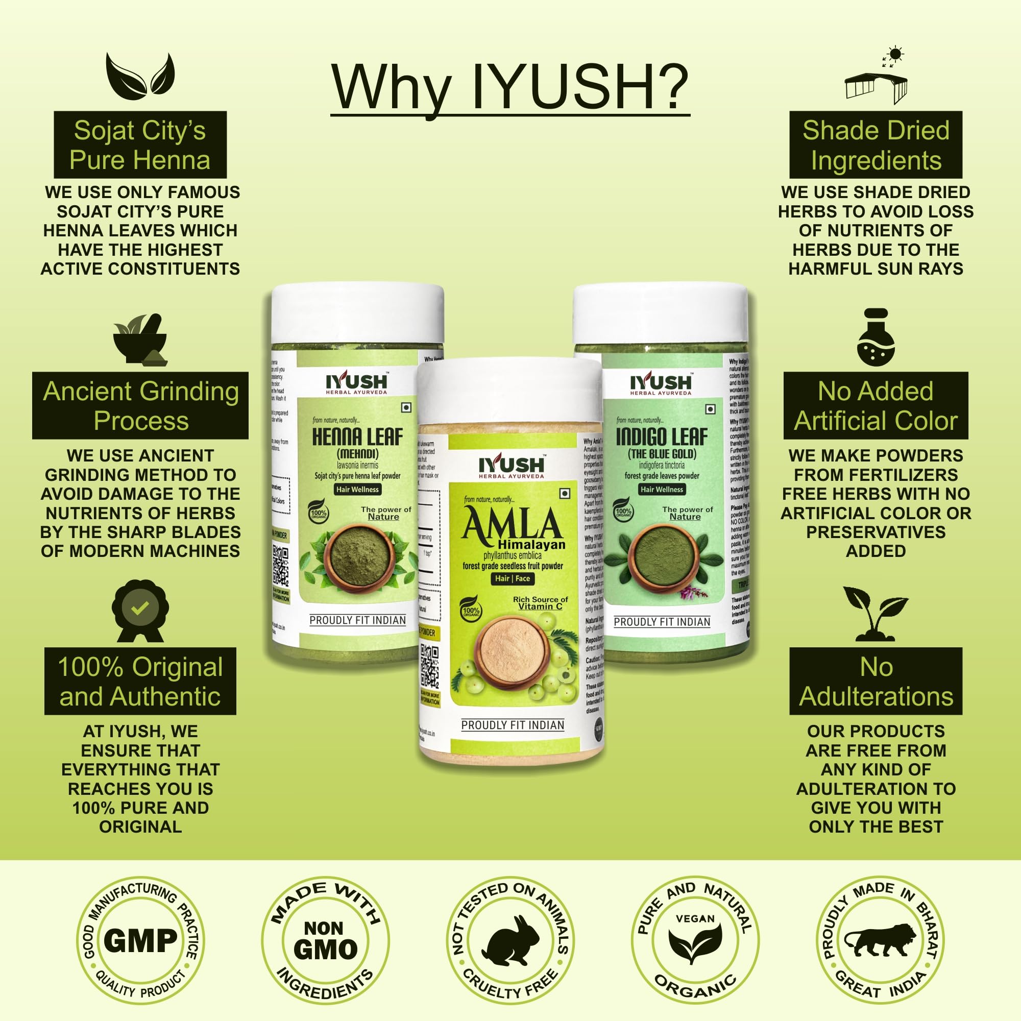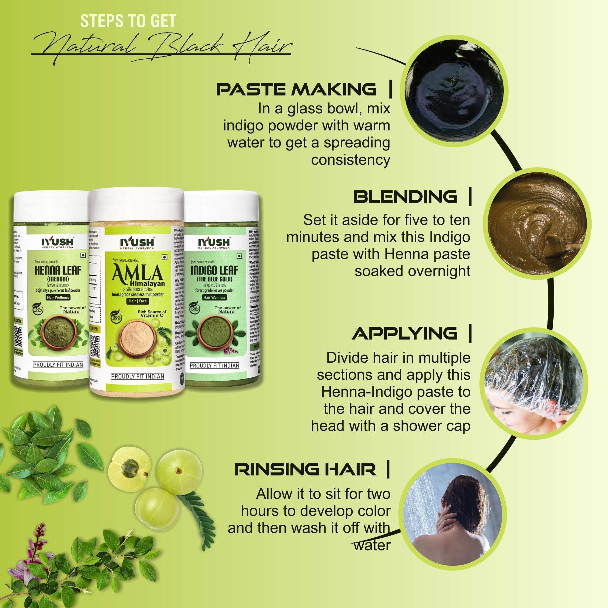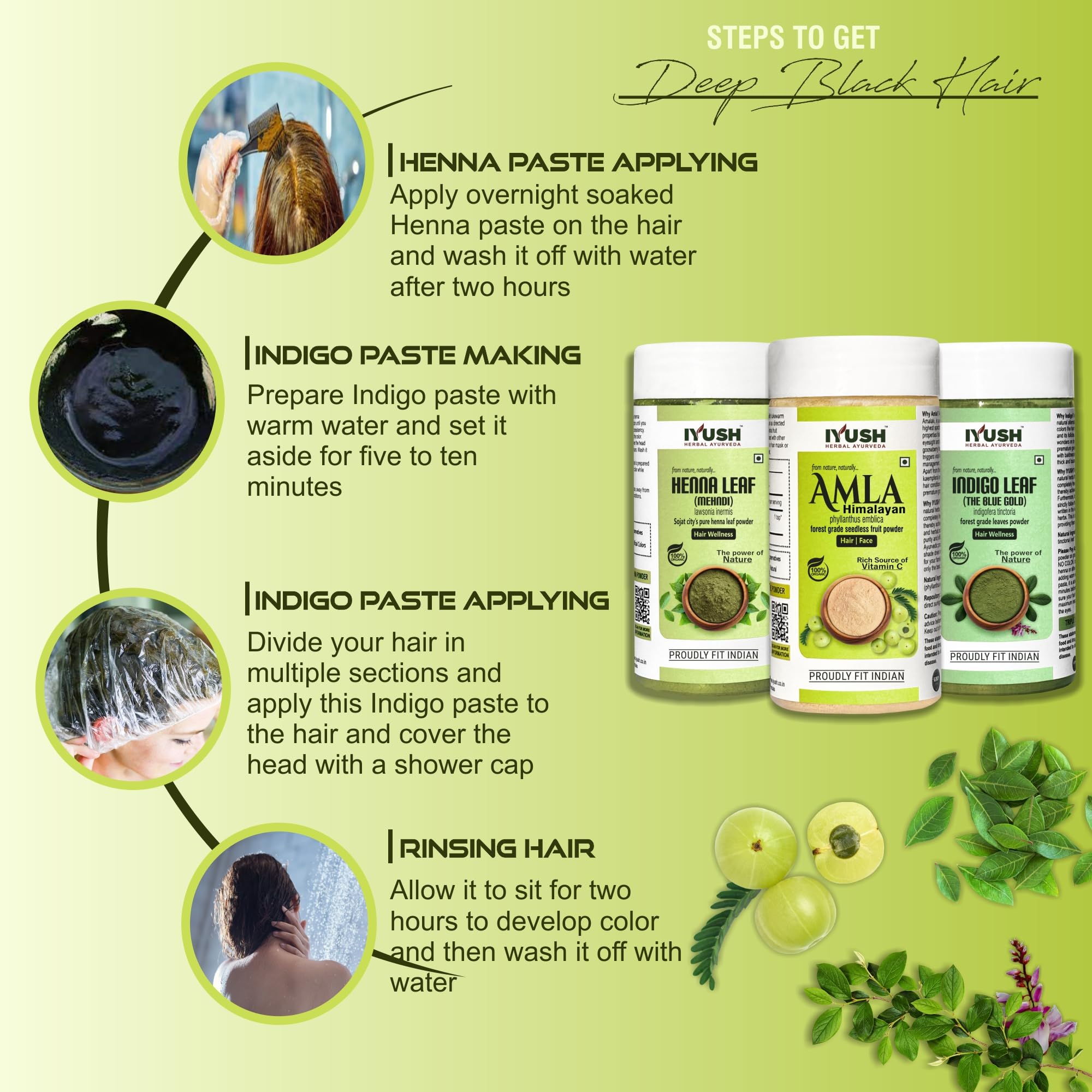 IYUSH Herbal Ayurveda Henna Amla and Indigo Powder - 100gm each