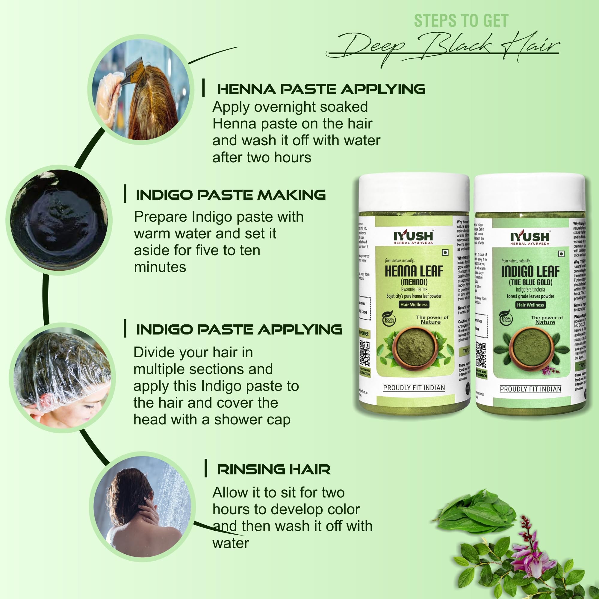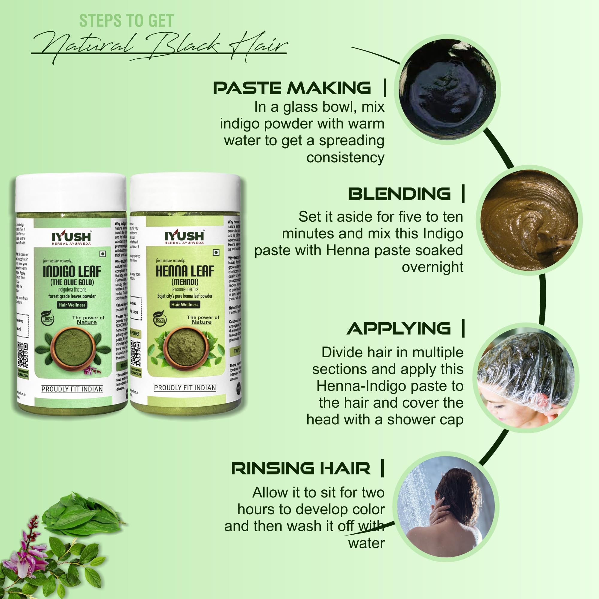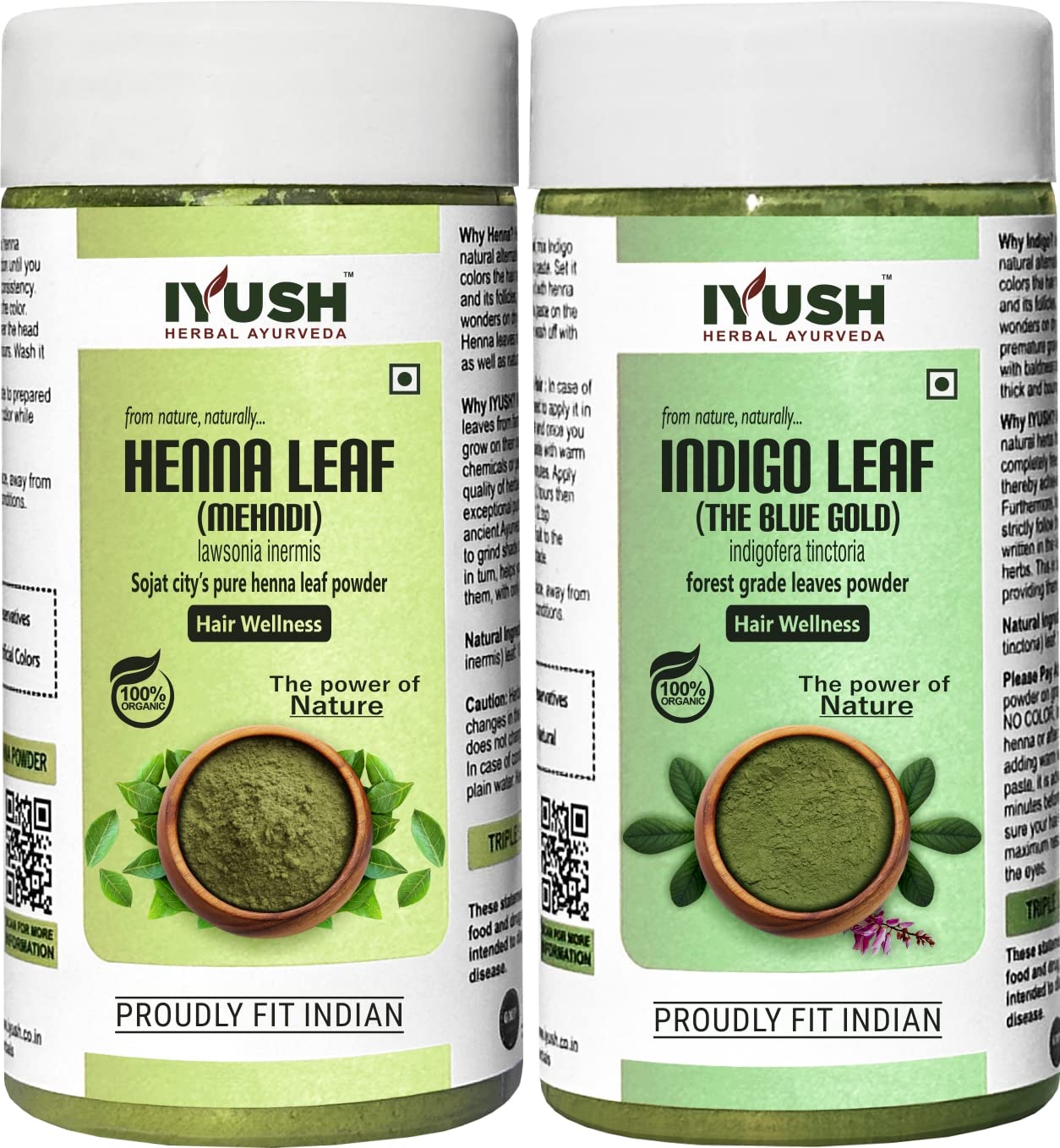 IYUSH Herbal Ayurveda Henna and Indigo Powder 200gm | Indigo Powder Organic for Hair and Henna Powder for Hair Colour | Natural Hair Colour without Chemical | Herbal Hair Colour | 100gm each