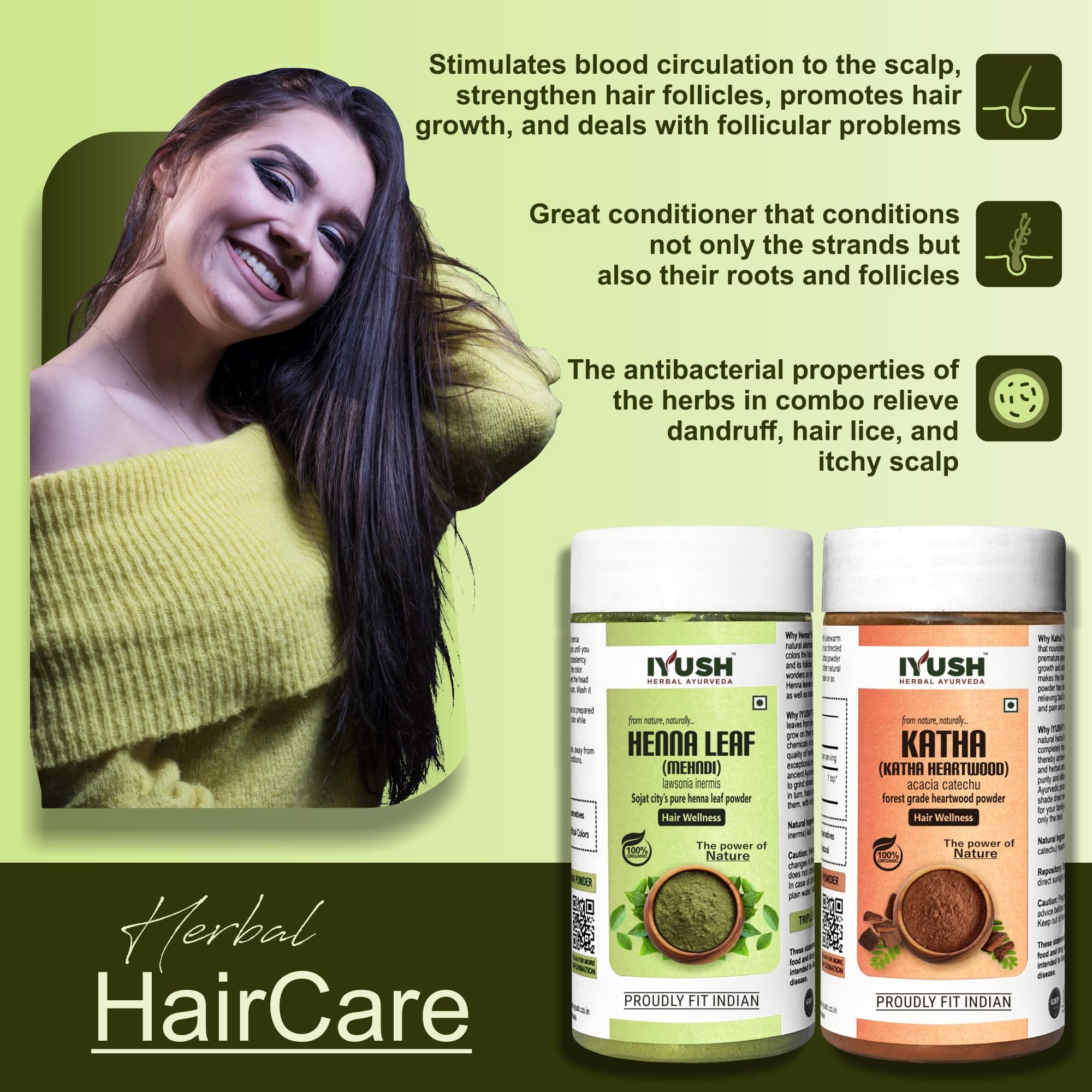 IYUSH Herbal Ayurveda Henna Powder for Hair Colour and Katha Powder for Hair 500gm | Natural Hair Colour without Chemical | Herbal Hair Colour | Hair Volume Powder | Hair Powder | 250gm each