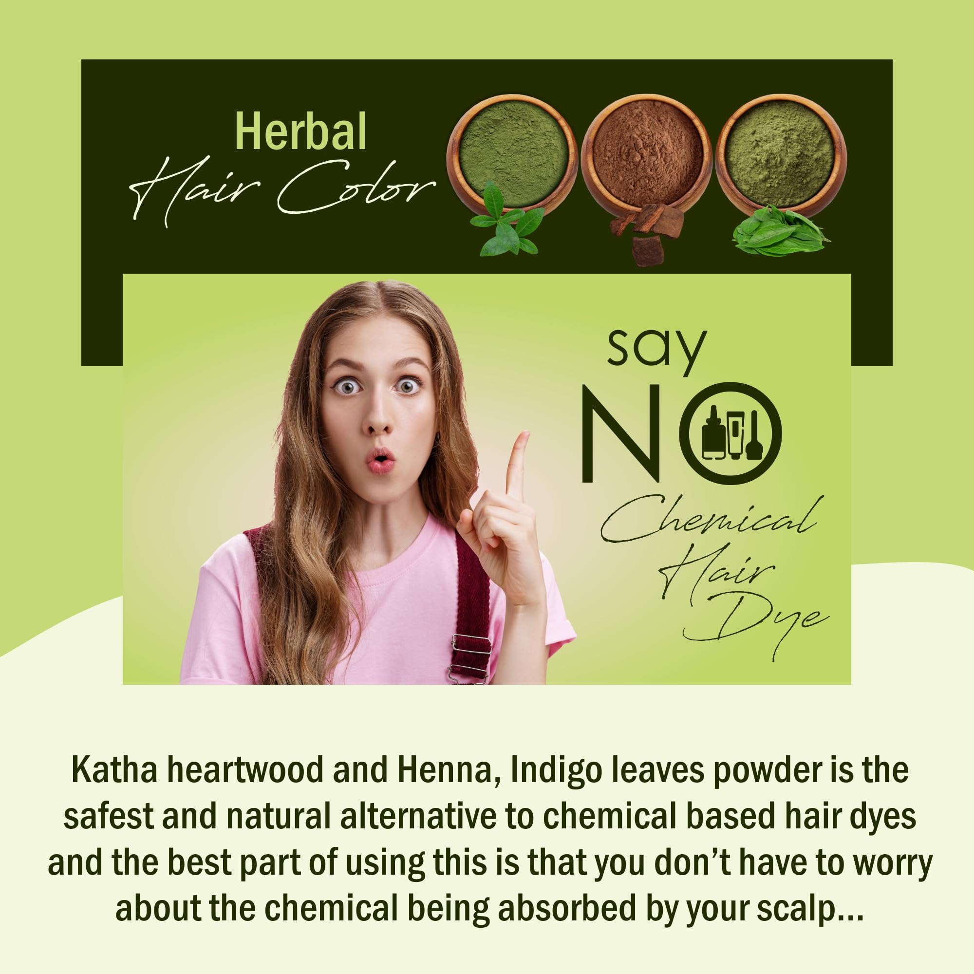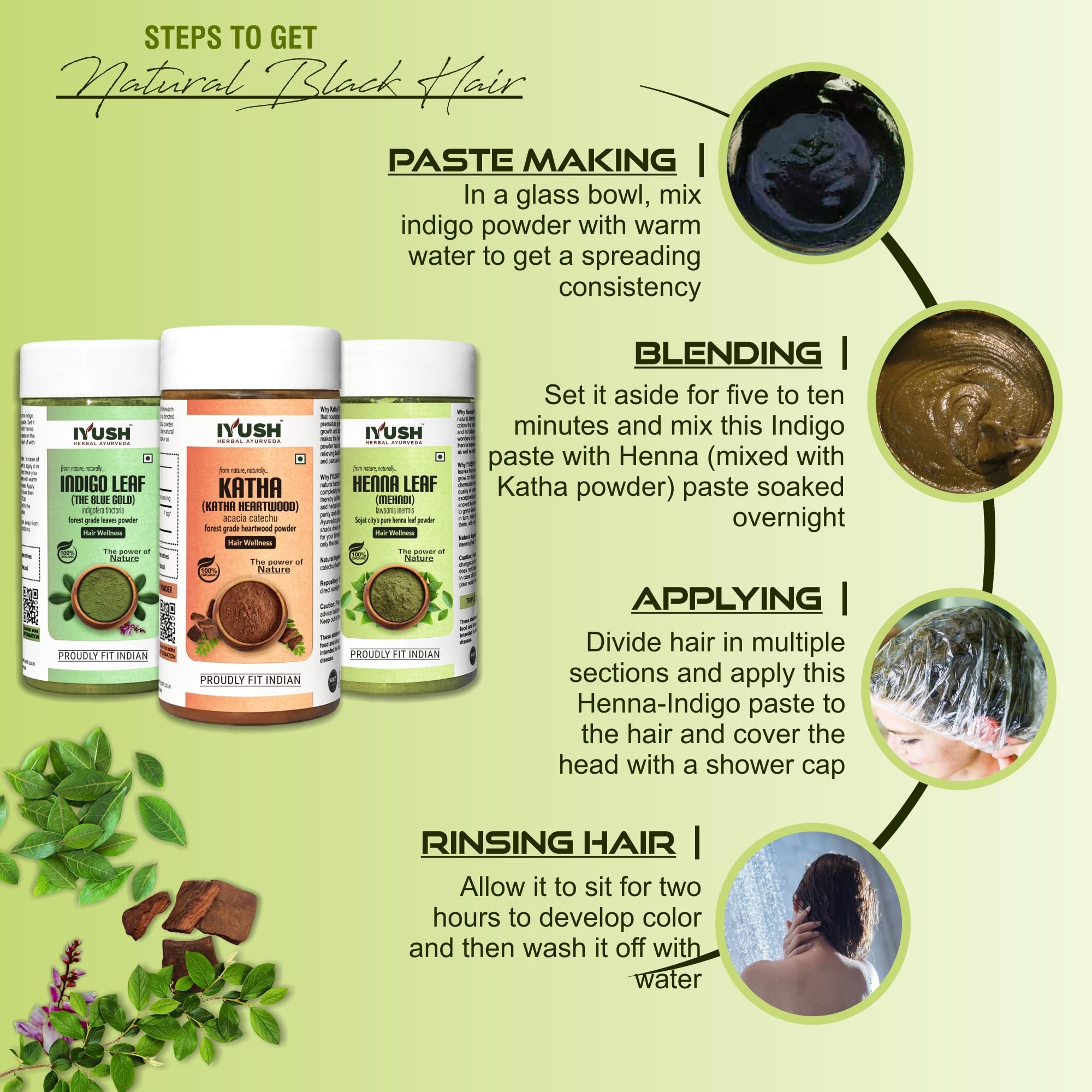 IYUSH Herbal Ayurveda Katha Powder with Indigo Powder for Hair and Henna Powder for Hair Colour 300gm | Natural Hair Colour | Hair Mask for Dry and Frizzy Hair | Hair Volume Powder |100gm each