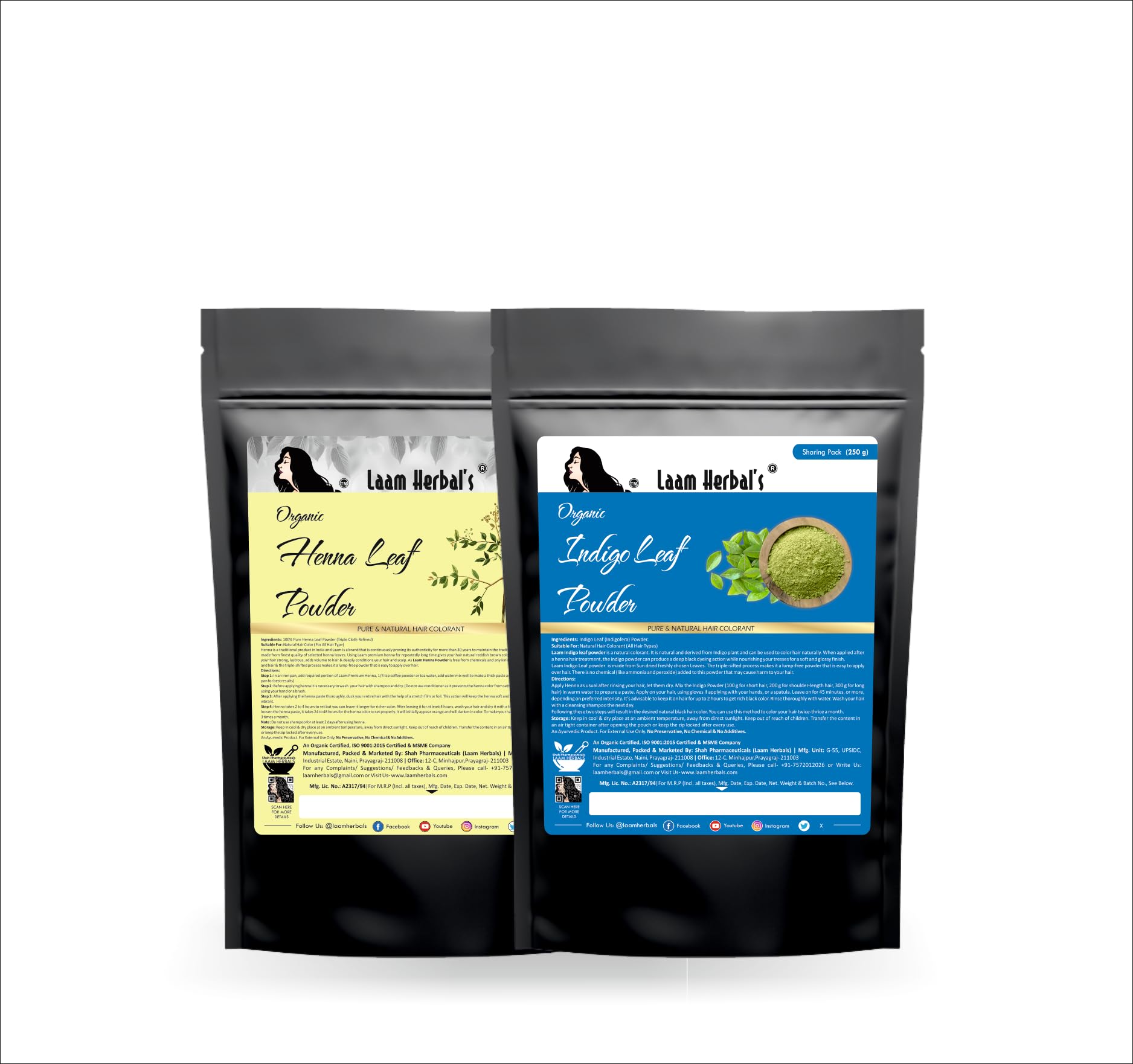 Laam Herbals is known for it Pure & Natural Henna Powder. Heena & Indigo powder is made by Shade drying the leaves of plants and grinding it to fine powder. Heena & Indigo leaves contains natural die that dies the upper layer of the hair temporarily. Laam Herbals provide natural and premium quality heena to our customers since 1991. Laam Indigo leaf powder is a natural colourant as henna powder. It is natural and derived from Indigo plant and can be used to color hair naturally. When applied after a henna hair treatment the indigo powder can produce a deep black dyeing action while nourishing your tresses for a soft and glossy finish. The triple-sifted process makes it a lump-free powder that is easy to apply over Hair.
