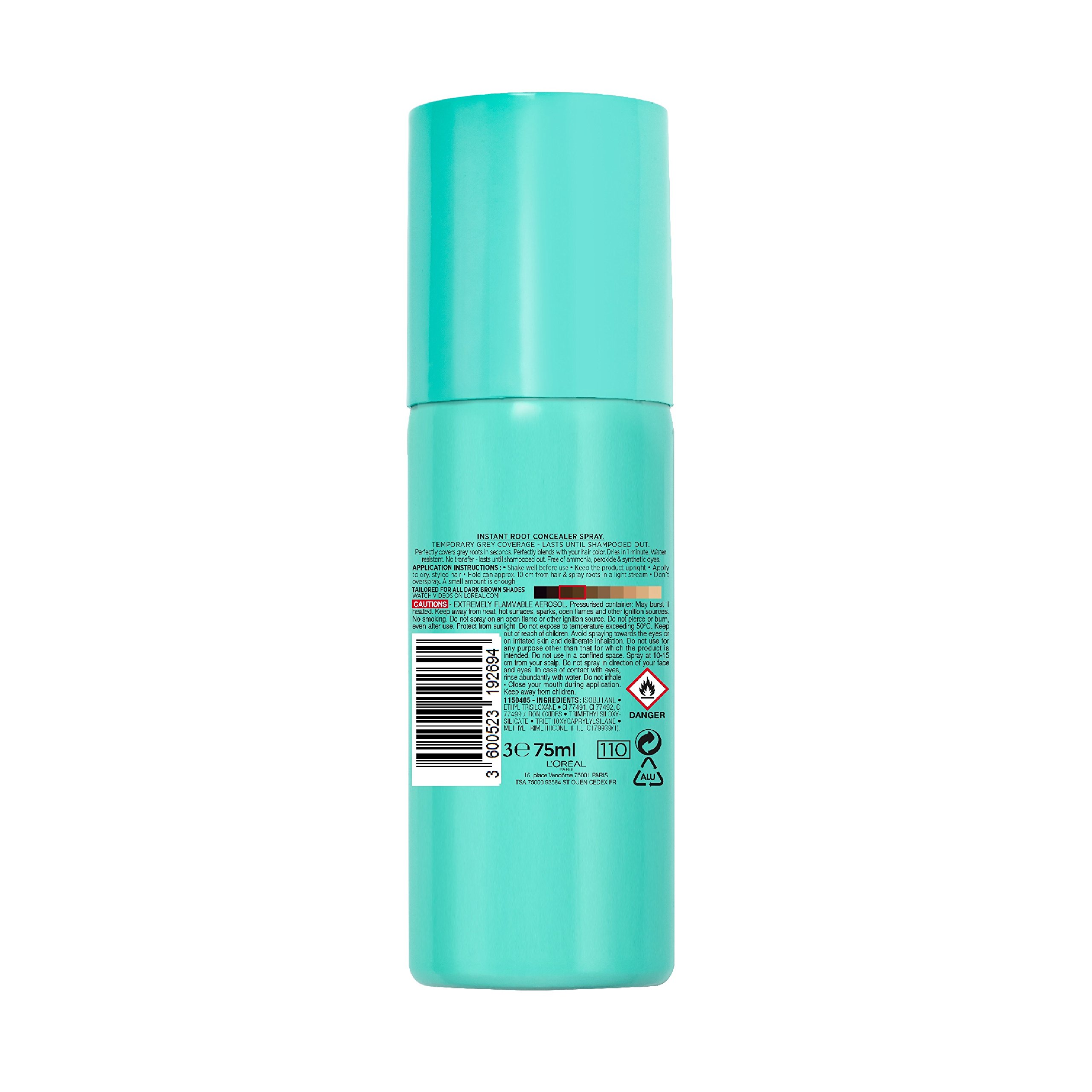 Perfectly matches and blends with your hair colour dries in 1 minute. A quick fix between home colourings and salon appointments or sudden appearance of grey hair!