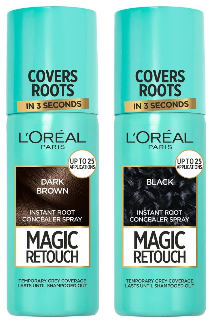 L'Oreal Paris Magic Retouch Temporary Root Touch Up Hair Colour Spray Shade 2 Dark Brown 75mlGrey hair? Need a quick touch up? No time to colour those grey roots? Introducing the new L'Oreal Paris Magic Retouch the first instant root touch up spray that cover grey roots giving you a flawless and natural look in just 3 seconds. It is effortless smudgeless and damageless with a quick dry formula. The spray is a temporary hair colour and lasts till the next wash. Magic Retouch by L'Oreal Paris is the perfect solution for concealing greys and roots with one quick spray. The pinpoint micro diffuser precisely targets greys and the rich colour pigments give you perfectly blended coverage. L'Oreal Paris Magic Retouch is an instant root concealer spray that covers grey roots in just one quick spray when where and how you need it. Find your shade today!.L'Oreal Paris Magic Retouch 1 Black 75mlGrey hair? Need a quick touch up? No time to colour those grey roots? Introducing the new L'Oreal Paris Magic Retouch the first instant root touch up spray that cover grey roots giving you a flawless and natural look in just 3 seconds. It is effortless smudgeless and damageless with a quick dry formula. The spray is a temporary hair colour and lasts till the next wash. Magic Retouch by L'Oreal Paris is the perfect solution for concealing greys and roots with one quick spray. The pinpoint micro diffuser precisely targets greys and the rich colour pigments give you perfectly blended coverage. L'Oreal Paris Magic Retouch is an instant root concealer spray that covers grey roots in just one quick spray when where and how you need it. Find your shade today!.