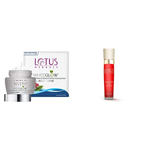 Lotus Herbals White Glow Skin Whitening and Brightening Nourishing Night Creme | 60g And Lotus Herbals Divine Dew Herbal Sindoor 21 Love Drop 8g