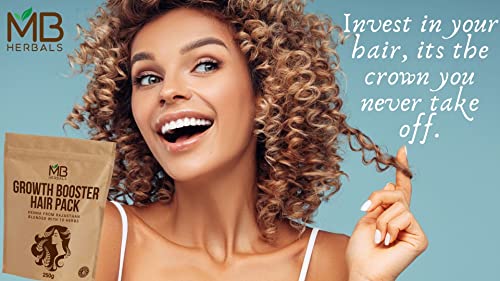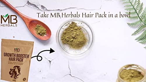 MB Herbals Growth Booster Hair Pack | Henna from Rajasthan Blended with 10 Herbs 250g | External Use Only Ingredients : Henna Shikakai Amla Brahmi Aloe Vera Neem Hibiscus Curry Leaf Kapoor Kachri Fenugreek. Direction of Use: You will need a pair of gloves brush bowl water. Take 3 Tbsp Hair Pack Powder in a bowl. Add water and mix it to make a smooth paste. Apply on your hair and let it sit for 1 or 2 hours. Rinse it with luke warm water. Use Shampoo after 24 hours. This product is processed in a facility that handles tree nuts. For the first time users we recommend a Hypersensitivity Test (Patch Test).