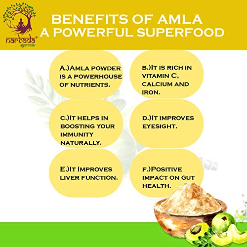 • UNCOMPROMISED QUALITY AND NO ADDED SUGAR: Narbada Ayurveda doesn’t compromise in its quality. We use only smallfruit Amlas (full of juice) right from India’s heartland. Narbada Ayurveda Amla powder has zero added sugar or any taste enhancers. This Ayurved