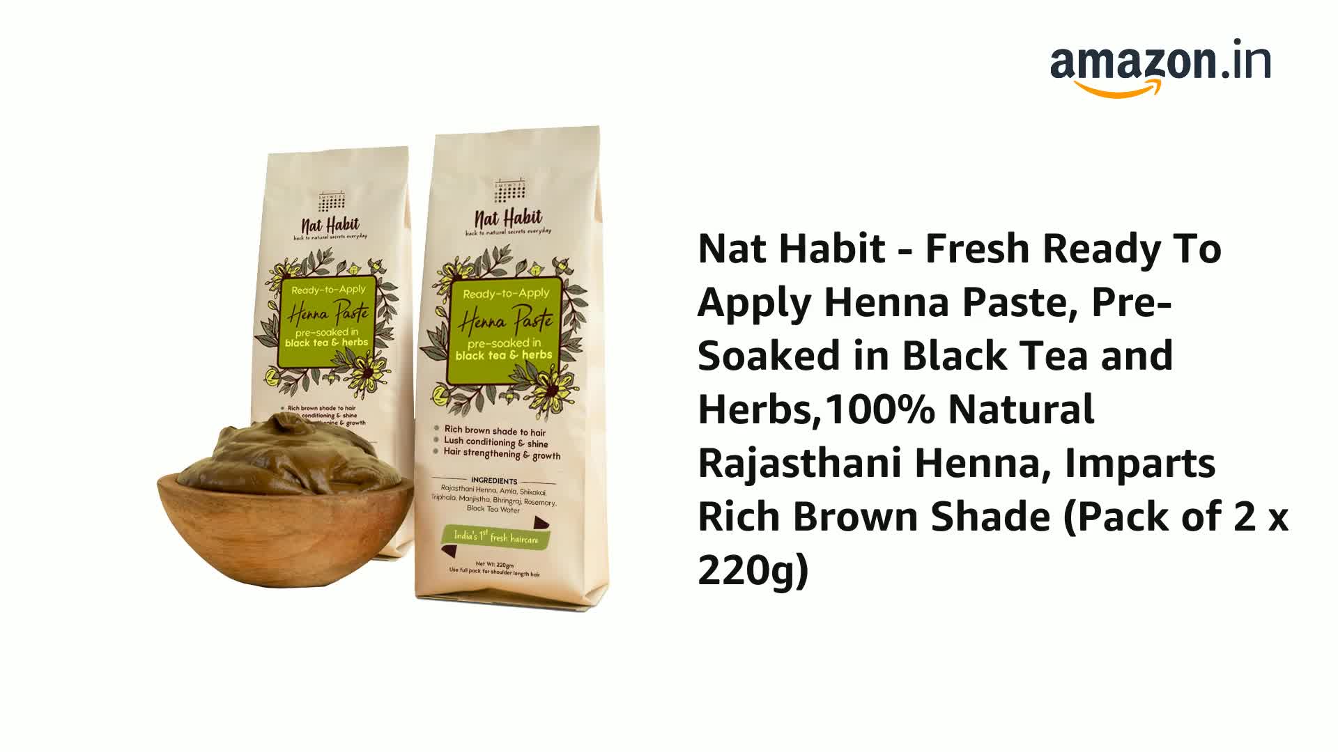 HomeHealth & PersonalHair CareNatural Hair ColorNat Habit - Fresh Ready To Apply Henna Paste, Pre-Soaked in Black Tea and Herbs,100% Natural Rajasthani Henna, Imparts Rich Brown Shade (Pack of 2 x 220g)