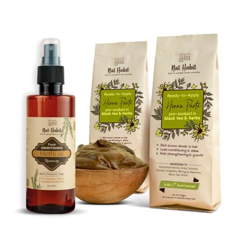 Nat Habit Ready-To-Apply Henna Paste & Rosemary Methi Jal-The Perfect Choice for Conditioning with Rich Dark Brown Color and Hair Growth Boost