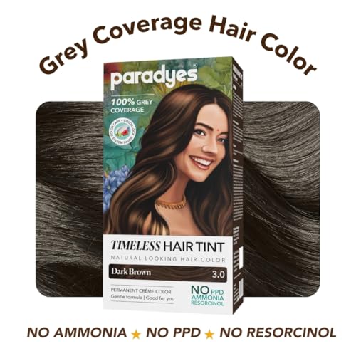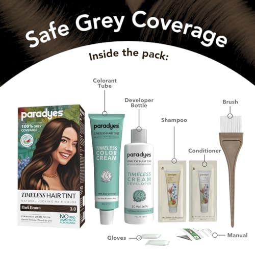 Paradyes Dark Brown Timeless Hair Tint, Permanent Crème Hair Colour for Natural-Looking Results, Complete Grey Coverage, Long-Lasting Formula Free from PPD, Ammonia, & Resorcinol, 3.0 Dark Brown