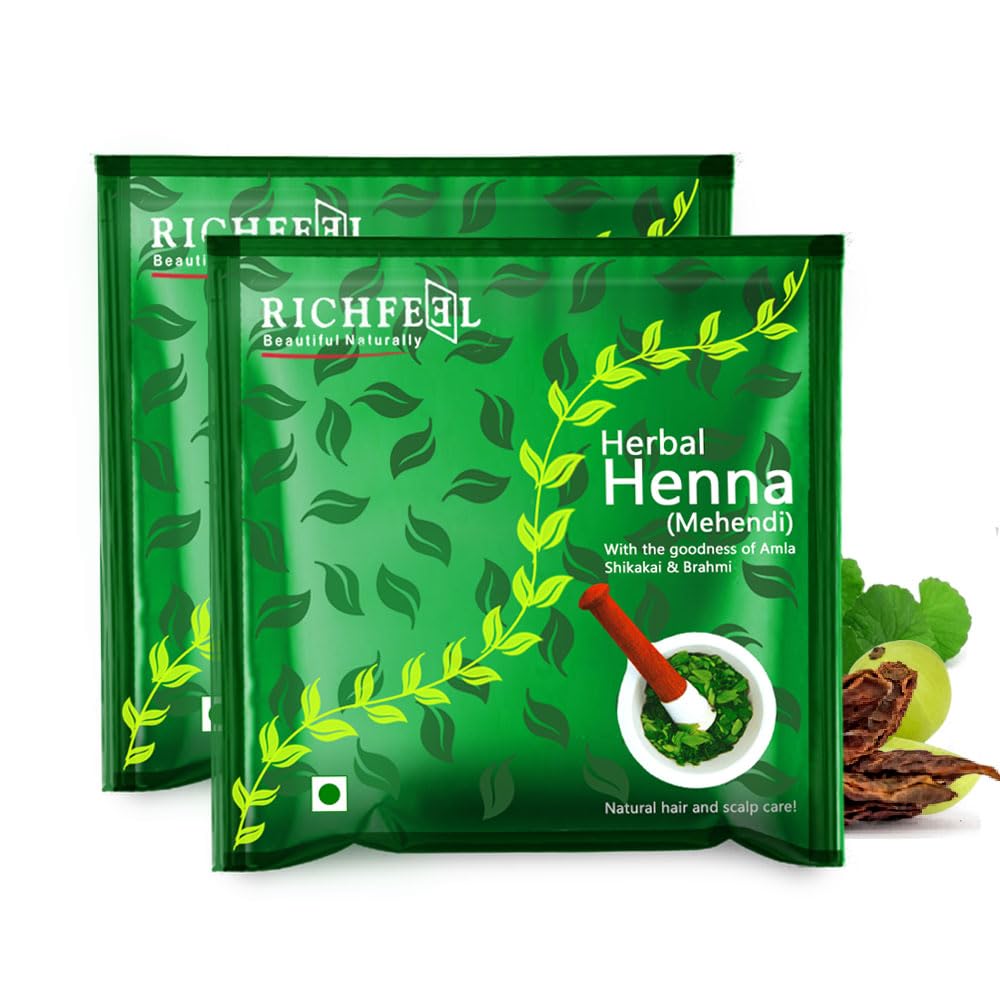 Richfeel Heena Mehendi Powder for Hair | Natural Hair Color and Conditioning with the goodness of Amla Shikakai & Brahmi | 100 g (Pack of 2)