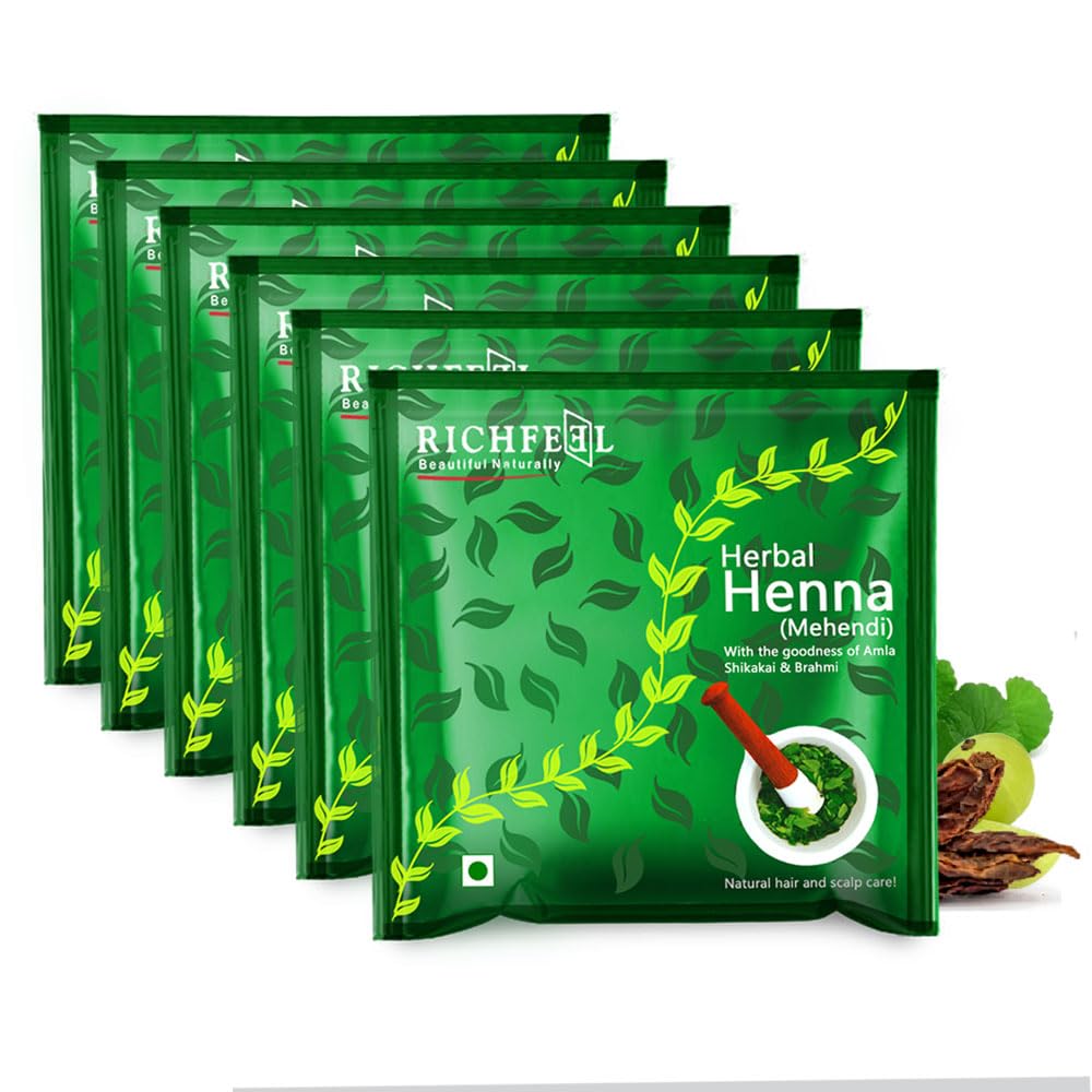 Richfeel Henna Mehendi 100g (Pack of 6) | 100% Natural Plant-Based Hair Color | Reduces Hair Fall Improves Hair Health & Repairs from Root to Tip | Reddish-Brown Tint