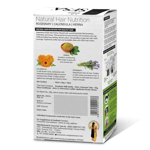 HomeHealth & PersonalHair CareNatural Hair ColorSESA Natural Black Hair Colour For Women and Men Long Lasting Natural Shiny Smooth Hair with Rosemary, Calendula and Heena, 100% Grey Coverage - (Natural Black 1.0)