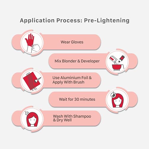 • DIY Salon like Hair Highlights: It is a complete DIY kit for you to achieve a desired shade. It contains a developer colourant blonder powder conditioner gloves highlightning brush aluminium foil information leaflet and a look book . To achieve hair co