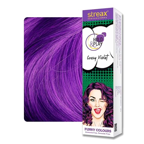 Streax Professional Hold & Play Funky Colour The Streax Professional unveiled its bold new range of semi-permanent colour shades Hold & Play Funky Colours that gives you the freedom to frequently switch up your look and enjoy the game of colour play. So choose from our funky colours of Green Violet and Blue and head to your nearest salon to get the stylish and trendy look you have always wanted. Highlights Comes in 3 vibrant shades i.e. Crazy Violet Wonder Blue and Glorious Green Semi-permanent hair colour that delivers vibrant results instantly Colors can be mixed to create a custom-shade This hair colour can be used directly without the use of developer This product is ammonia and peroxide free.