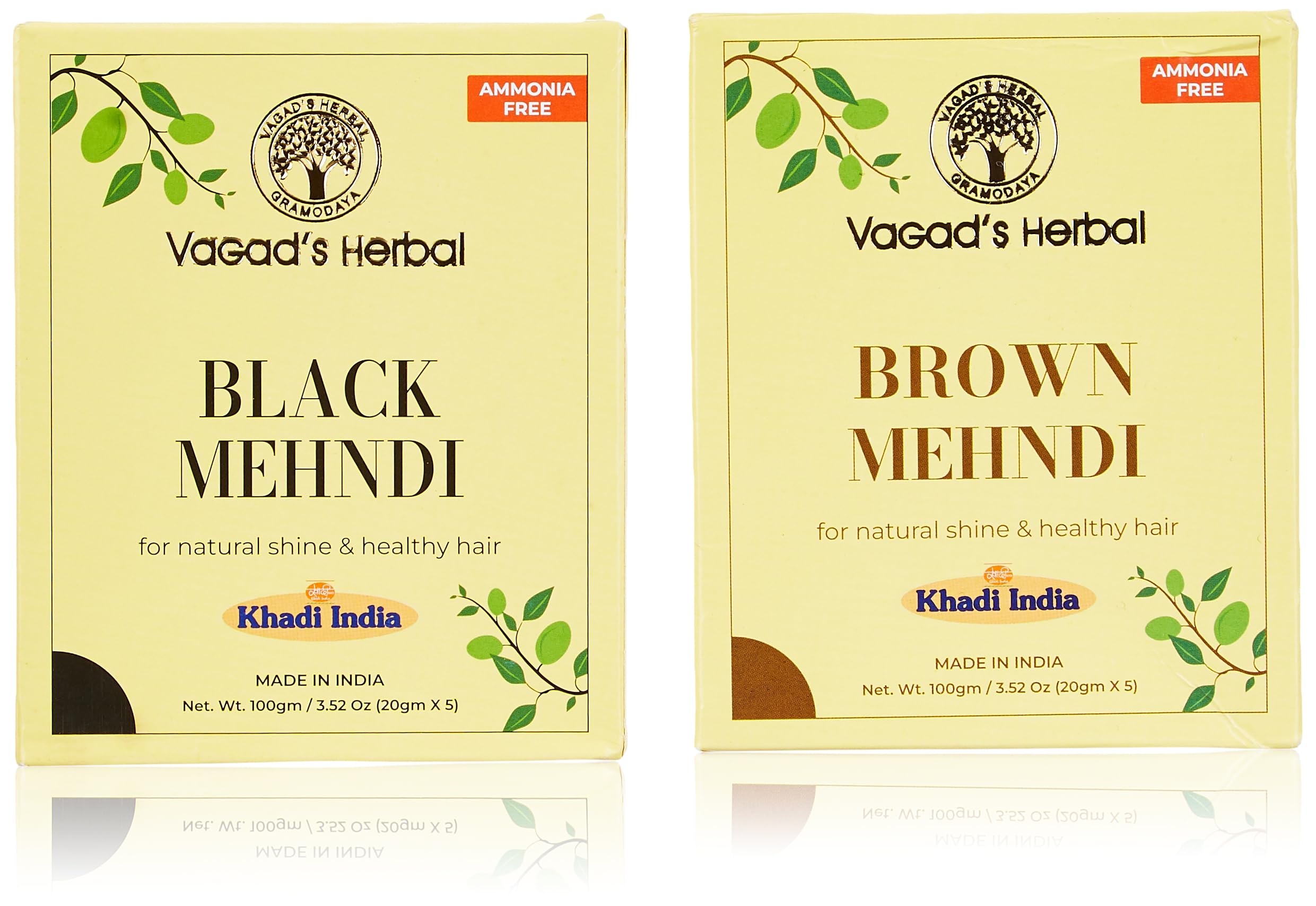 Vagad's Khadi Black Mehndi 100gm | Natural | Ammonia Free Henna & Vagad's Khadi Brown Mehndi 100gm | Natural | Ammonia Free Henna