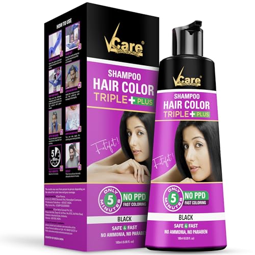 • NO HARMFUL CHEMICALS: VCare Shampoo Hair Color is completely safe from hazardous and Harmful chemicals like PPD Ammonia Silicones and Parabens.