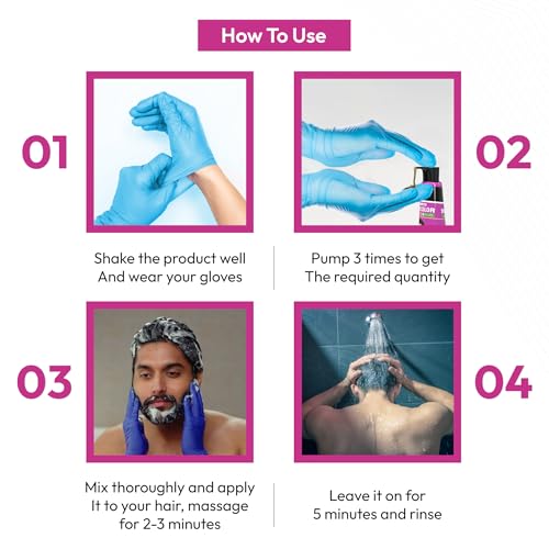 • EASY TO USE: Use the gloves that we have provided. Colour your Hair Moustache Beard Chest and Hand Hair! Apply the shampoo to the hair and massage gently for 5 minutes. Rinse the hair and you will get black hair.
