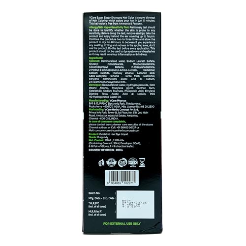 • 5 MINUTES ONLY : Vcare Super Eazzy Burgundy Hair shampoo is designed to make your hair Burgundy in 5 to 10 minutes. You can use it like a regular shampoo and wash your hair by gently rubbing the shampoo on your head to get Burgundy hair