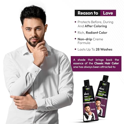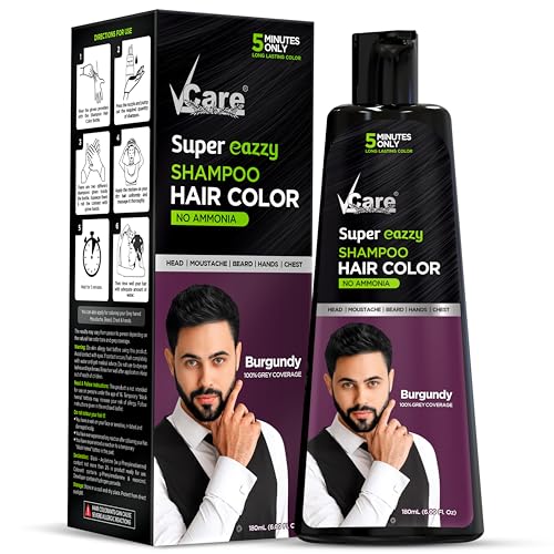VCare Super Eazzy Hair Colour Shampoo for Women and Men 180ml | Only 5 Minute Root Hair Dye Coloring Kit Head, Moustache, Beard, Hands, Chest | No Parabens, Ammonia And Sulfates (180ml, Burgundy)