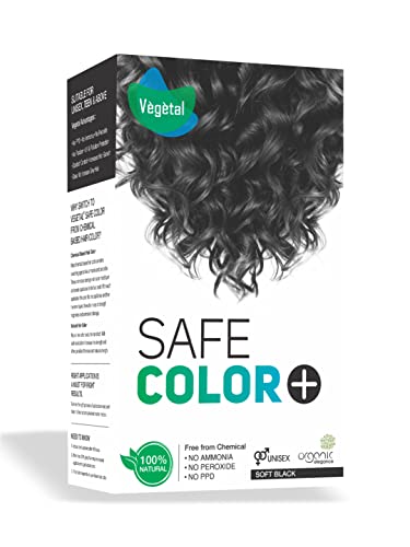 Vegetal Safe Hair Color Soft Black 100gm - Certified Organic Chemical and Allergy Free Bio Natural Hair Color with No Ammonia Formula for Men and Women