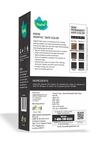 Ayush certified - contains no harmful synthetic chemical no ppd no ammonia no parabens no peroxide