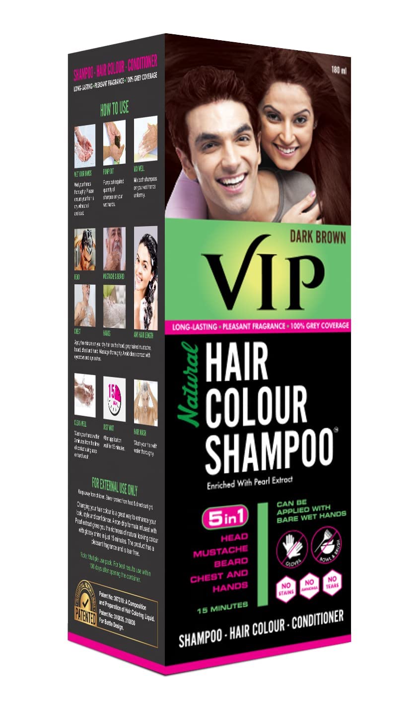 VIP HAIR COLOUR SHAMPOO (180 ml (Pack of 1) Dark Brown)