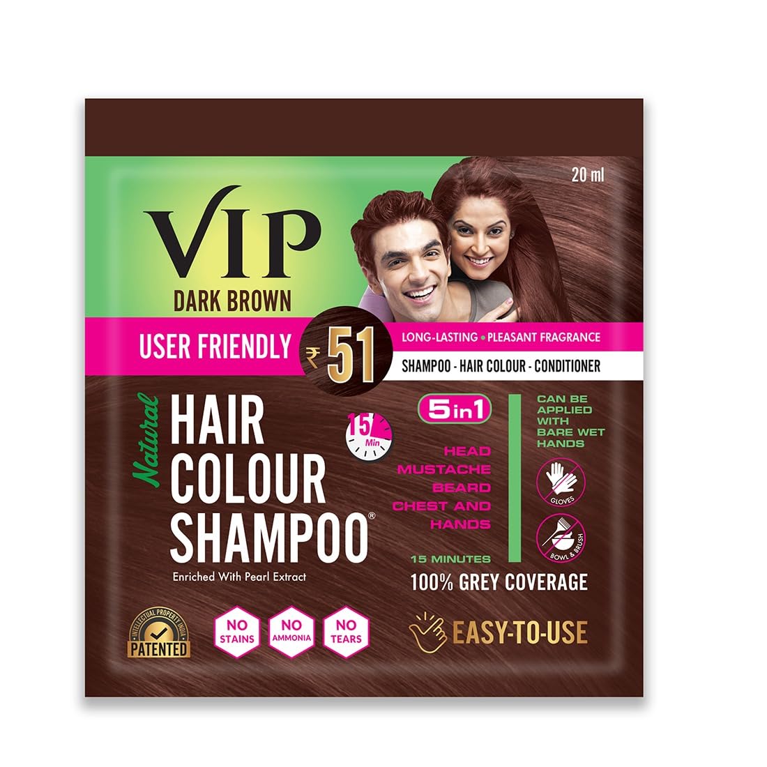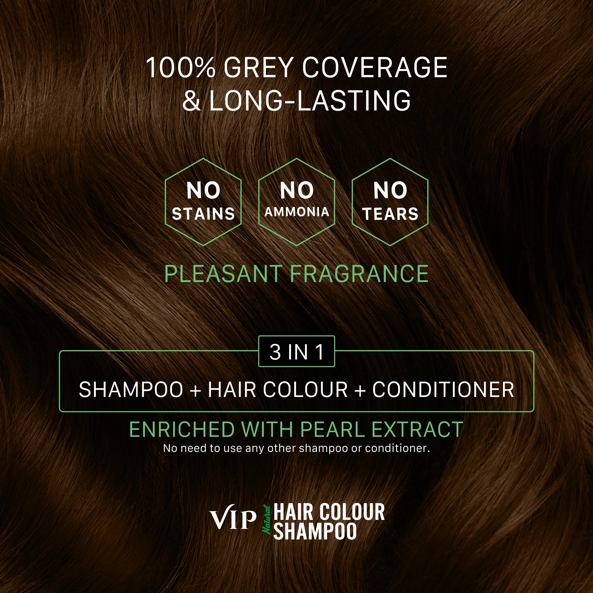 VIP Hair Colour Shampoo for Women and Men Dark Brown- (Pack of 2) | 100% grey hair coverage in 15 minutes | Long lasting