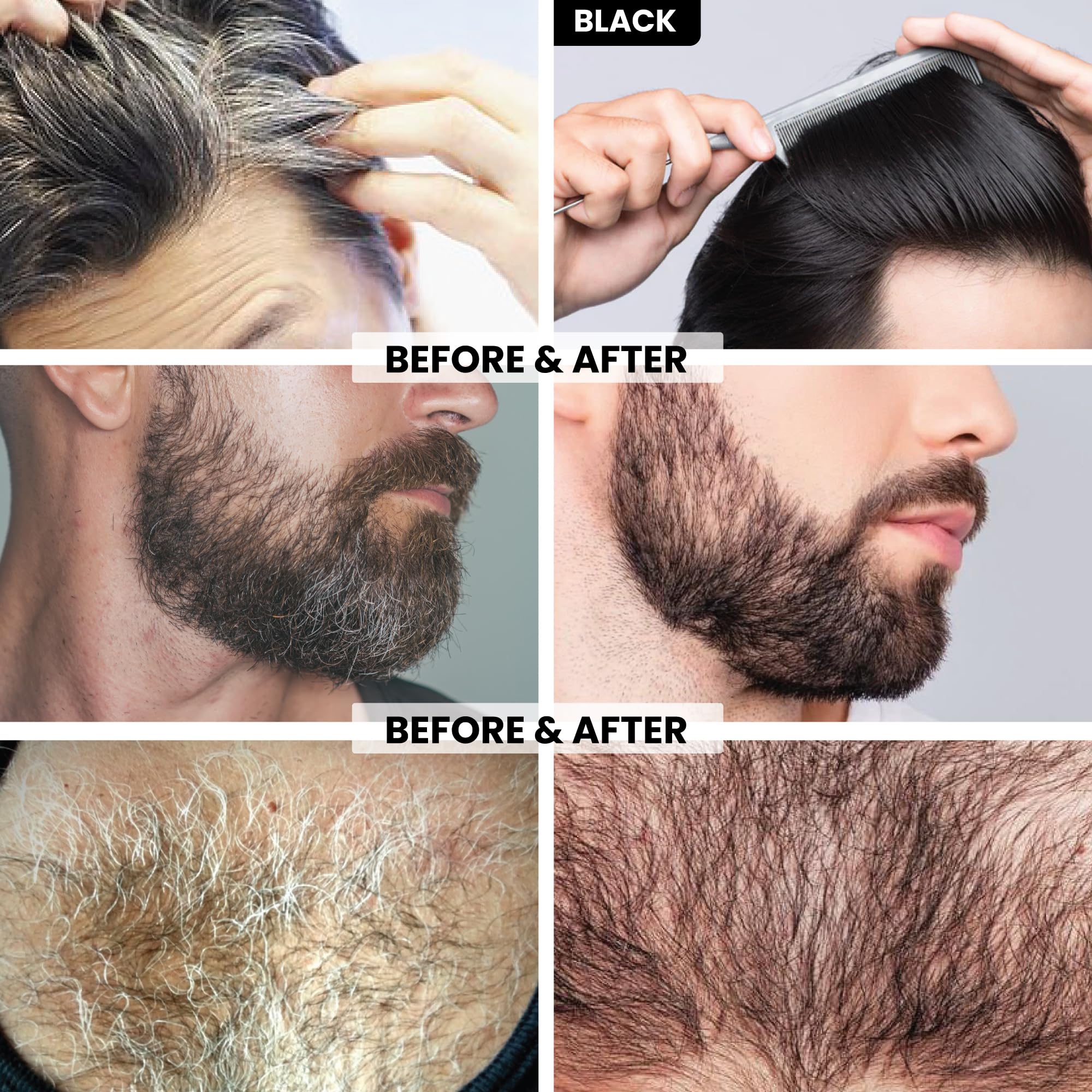 100% Grey Hair Coverage Achieve full grey coverage in just 10 minutes! Our advanced formula ensures even natural black color giving your hair a rich youthful look.