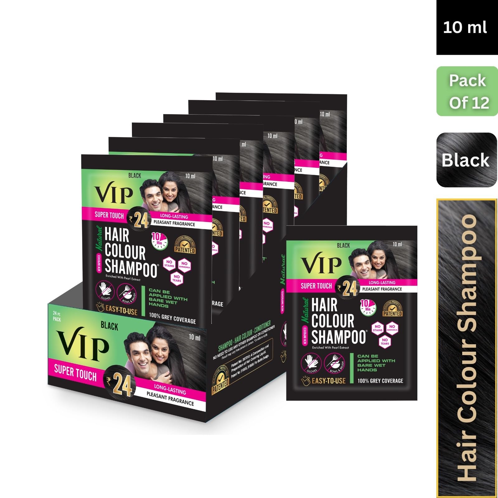 VIP Natural Hair Colour Shampoo | Black Hair Color | 120ml (10ml à Pack of 12)