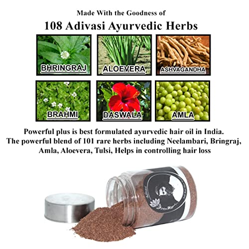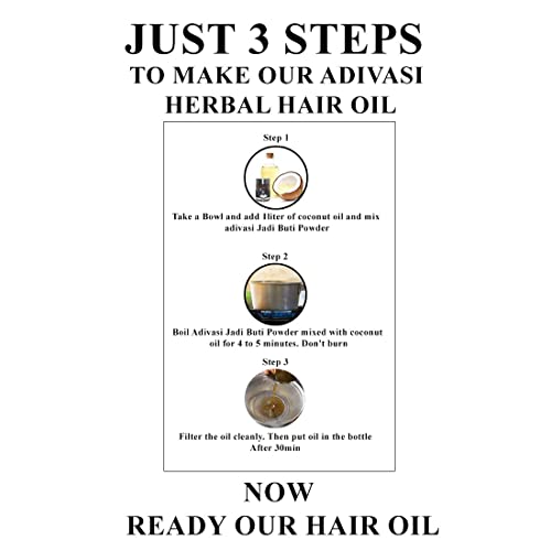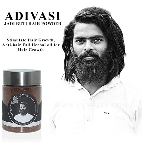 Adivasi Jadi Buti Hair Powder (For hair oil) is an Indian Adivasi Ayurvedic concept which effectively tackles all hair related issues naturally. When applied as directedit effectively s hair falldandruff s shine promotes hair growth and thickening along with keeg the scalp healthy and clean. MADE WITH THE GOODNESS OF 108 MIRACULOUS HERBS: Our Adivasi Jadi Buti Hair Powder has been made with the goodness of 108 magical herbs Aloe Vera curry leaves ramacham RootOnionMethi hibiscus flower Neelambari Bhringraj tulsi brahmi Kasthuri Root and amla. And many more secret ingredients. BENEFITS: Controls hair fall & breakage effectively Nourishes hair follicle s healthy hair growth Controls premature graying Promotes thickening of hair dandruff Keeps scalp healthy & clean s volume to hair